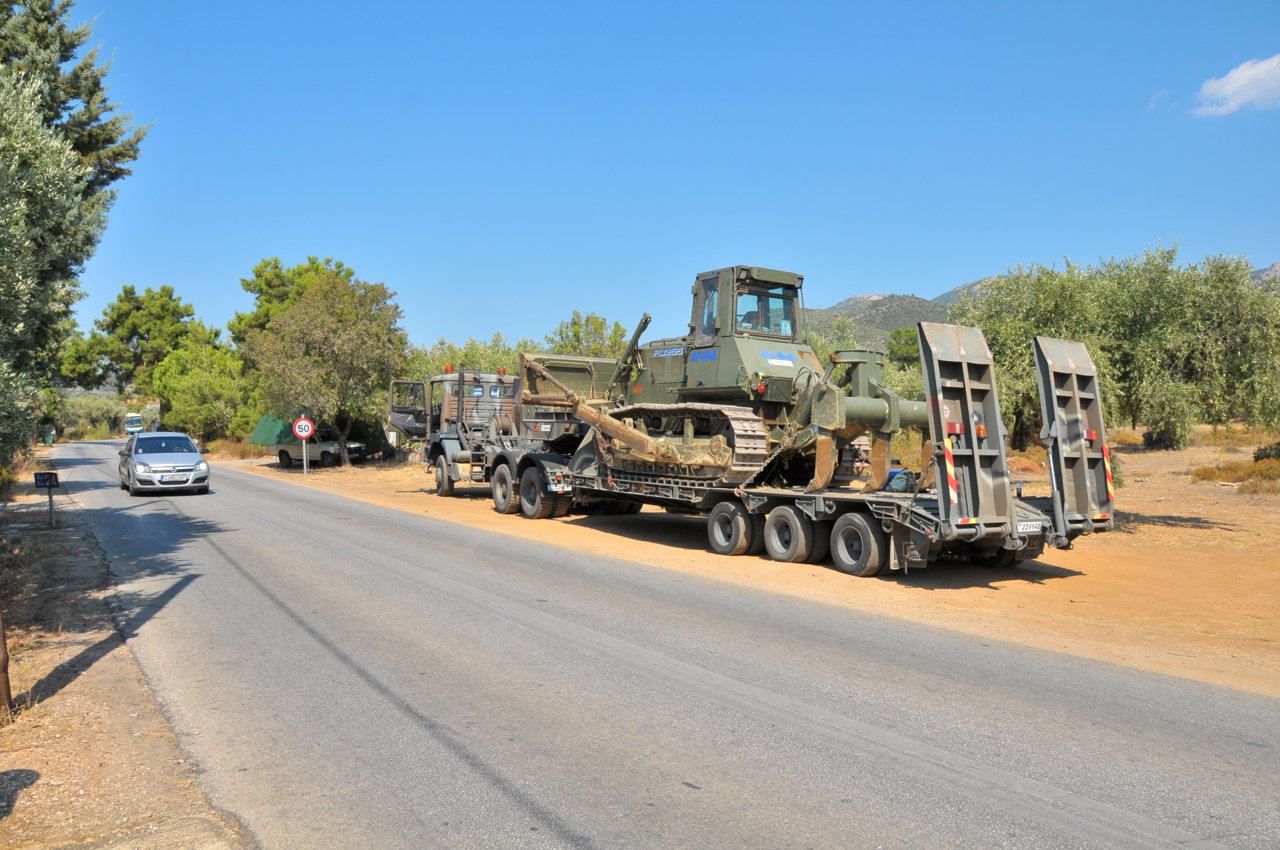 We also saw numerous fire trucks, buses from the National Fire Service, and bulldozers from the army, parked along the island’s ring road on stand-by, keeping a close watch.
