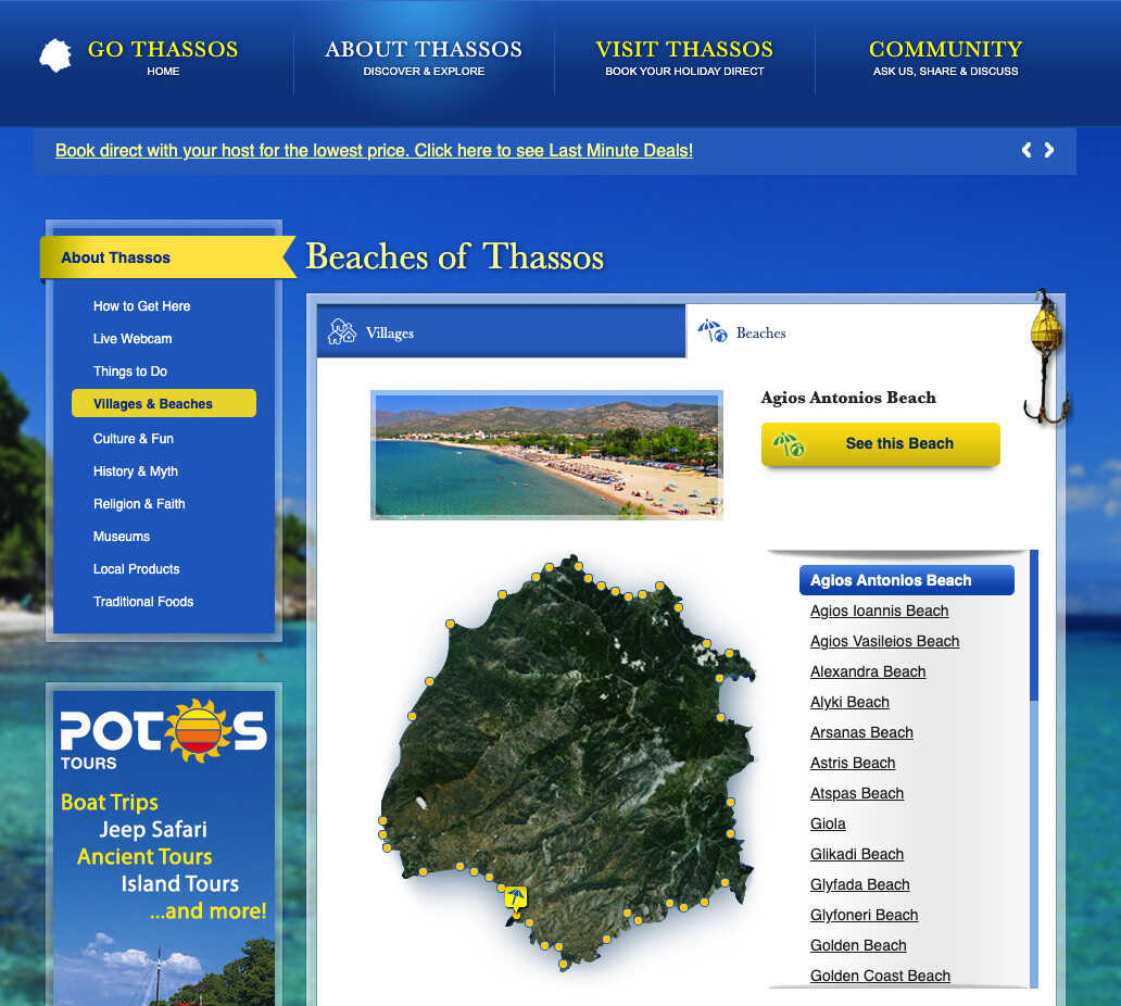 Go to https://www.go-thassos.gr/about-thassos/places and click “Beaches”