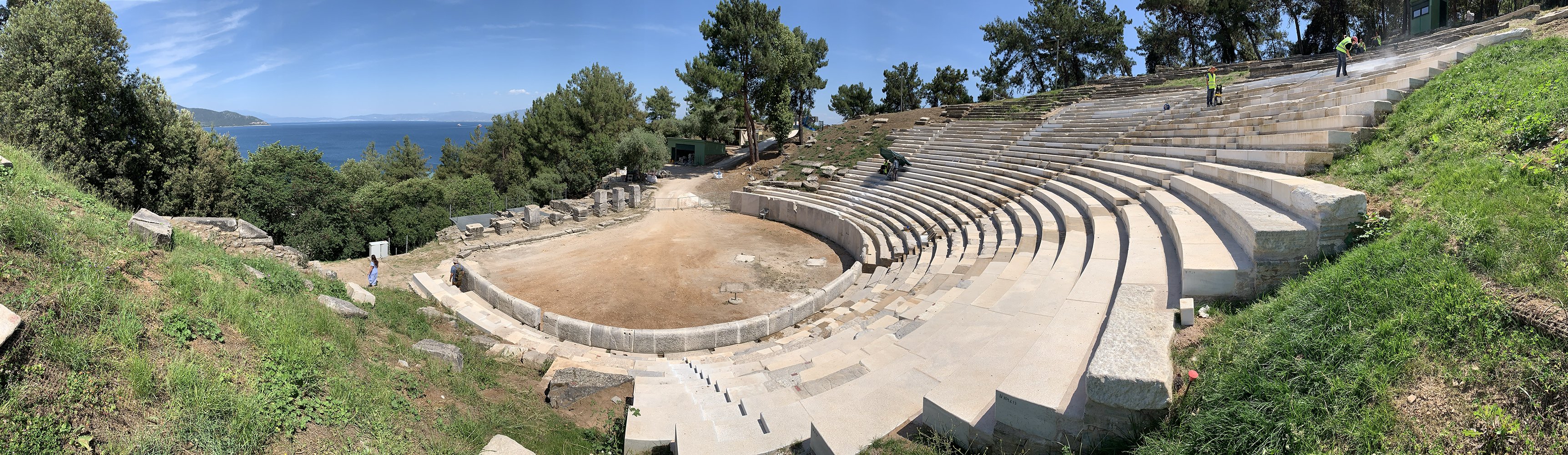 The wooden seating at the theater has been completely replaced with Thassian marble, so now it looks how it used to in ancient times. I walked up there last week and saw it from outside the fence and it looked great!!
